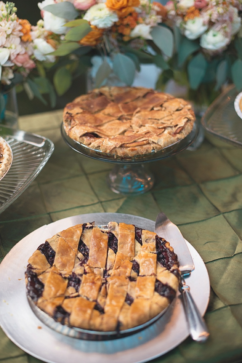 Having donuts for dessert is the newest variant that is stealing the show in the past couple of years. Whether making a cake out of donuts, serving them as a part of the day, or even mounting them on a gorgeous donut wall, there are so many options to choose! Because they are so individualized, donuts can be customized for your guests – and for you! Whether you are avoiding certain flavors, hosting a brunch wedding, or just want all the sprinkles, donuts as a wedding dessert is something we can all get on board with. (Consider even adding a milk or coffee station to pair!)Pies